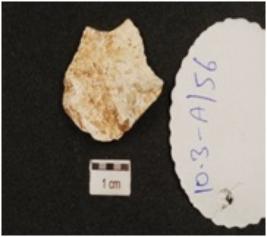 | Description / विवरण | An utilized flake made on chert, prepared platform on proximal end, blade scars on side and use wear marks on working edge. |