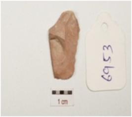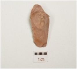 | Description / विवरण | A scraper made on chert, flake scars on the dorsal side, use wear and wavy cutting edges. |