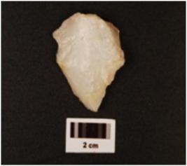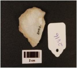 | Description / विवरण | Flake with a striking platform visible on one side, slight chippings on surface, edges are sharp. |
