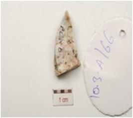 | Description / विवरण | A core made on chert, prepared platform on proximal end and blade scars on one side. |