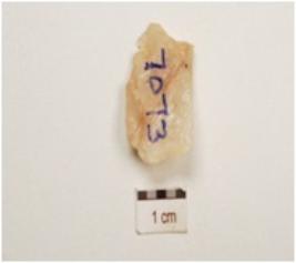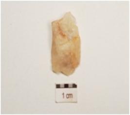 | Description / विवरण | An utilized flake made of end struck flake, prepared platform on proximal end, use wear marks on working edges. |