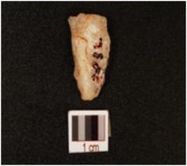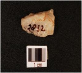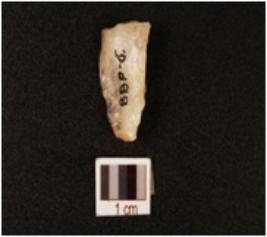 | Description / विवरण | Balde made on quartz, bulb of percussion on the ventral side, prepared platform on the proximal end, distal end broken, use wear marks along the cutting edges. |
