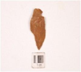 | Description / विवरण | A point made on a chert flake with use-wear marks along the cutting edge and a mid-ridge on dorsal side. |