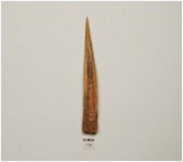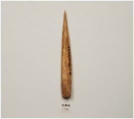| Description / विवरण | A bone point sharp tip and oval section polished surface. |
