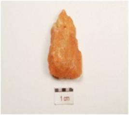 | Description / विवरण | An utilized flake made on end struck flake, prepared platform on proximal end, use wear marks on working edges, triangular in section. |