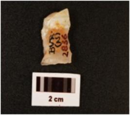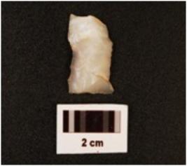 | Description / विवरण | Blade, made on banded agate, blade scars on the surface, diffused bulb on the ventral side, prepared platform, sharp edges on the parallel sides. |