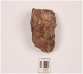 | Description / विवरण | A chert core with flake scars on the surface and partly intact cortex. |
