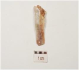 | Description / विवरण | A blade made on chert, use ware marks on cutting edge, cortex on surface, triangular cross section and mid ridge on dorsal. |