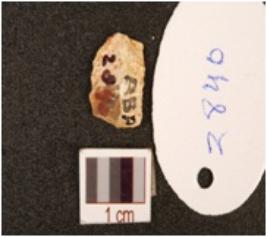 | Description / विवरण | Blade made on chert, mid ridge on the dorsal side, prepared platform on the proximal end, distal end intact, use wear mark along the cutting edges. |