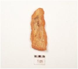 | Description / विवरण | Blade made of quartz striking platform on posterior end, use wear marks on working edges triangular in section. |