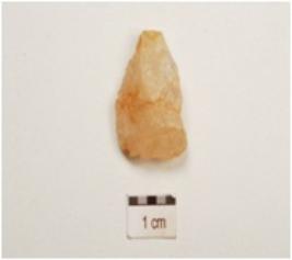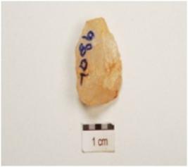 | Description / विवरण | An utilized flake made on end struck flake, flake scars on both sides and use wear marks on working edges, prepared platform on proximal end. |