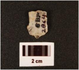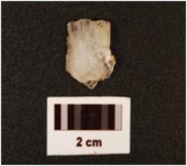 | Description / विवरण | A flake made on quartz, irregular edges, distal end is broken, defused bulb on proximal end, dorsal side is uneven and ventral is flat. |