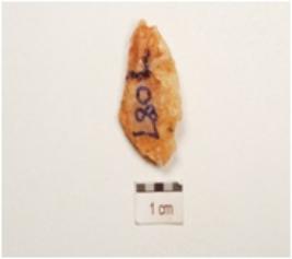 | Description / विवरण | An utilized flake made on end struck flake, flake scars on both sides and use wear marks on working edges, triangular in section. |