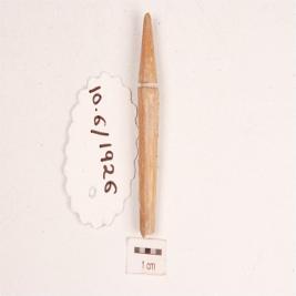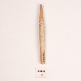 | Description / विवरण | A bone point with smooth and polished surface, grooved near the pointed end and broken at the other end. |