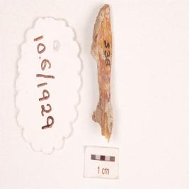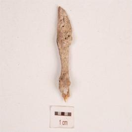 | Description / विवरण | Fragment of a bone point, broken at both the ends, eroded surface. |