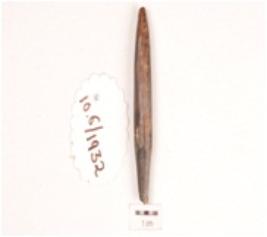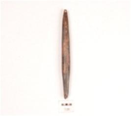 | Description / विवरण | A bone point with smooth & polished surface, pointed at both the ends and slightly sharpened at one end, blackish surface. |
