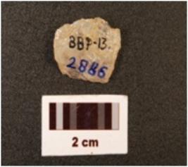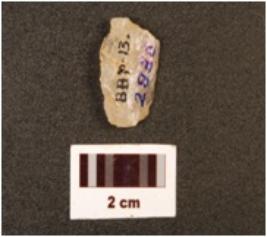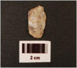 | Description / विवरण | A parallel sided blade, made on quartz, ridge on dorsal side, irregular retouching marks on edges, distal end is broken, defused bulb on proximal end. |