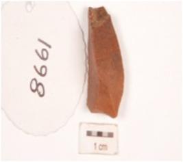 | Description / विवरण | Blade made of a chert with prominent ridges, use-wear marks. |