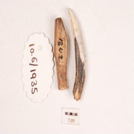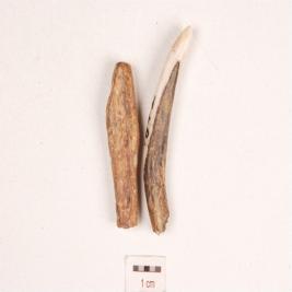 | Description / विवरण | Two fragments of bone point, one is slightly curved and pointed at one end and the other one is brokena at both the ends smooth and polished surface. |