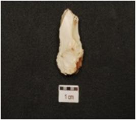 | Description / विवरण | An utilized flake made on chert, end struck flake, bulb absent use ware marks on cutting edge, partly retouched, flake scars on surface and triangular cross section. |