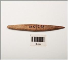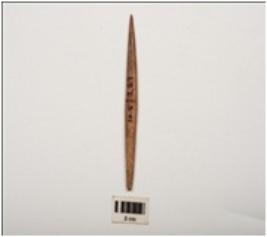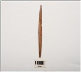 | Description / विवरण | Bone Point, narrow having points at both ends, polished at pointed end, oval in section and light brown in colour. |