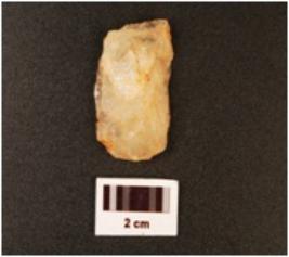 | Description / विवरण | Blade made on quartz, diffused bulb on the ventral side, distal end broken use wear mark on the cutting edges. |