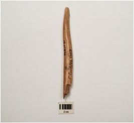| Description / विवरण | Modified anteler horn of indeterminate use with polished surface, fine vertical cracks on surface and broken from both ends. |