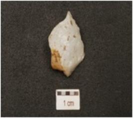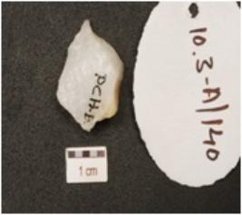 | Description / विवरण | An utilized flake made on crystal quartz and use wear marks on cutting edge. |