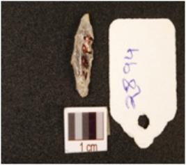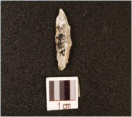 | Description / विवरण | Crescentic point made on quartz, use wear mark along the one cutting edge. |
