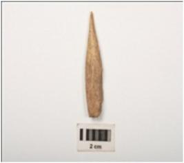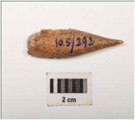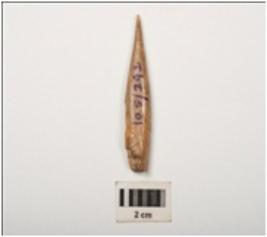 | Description / विवरण | Fragment of bone point with polished surface and broken at thick end, light brown in colour. |