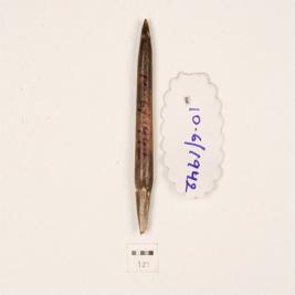 | Description / विवरण | A tanged point, made on bone with well polished surface, pointed both ends but one end slightly broken and oval in section. |