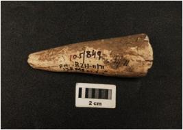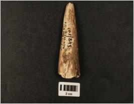 | Description / विवरण | Modified anteler horn with partly polished surface and of indeterminate use, broad at one end and earthy incrustation on surface. |