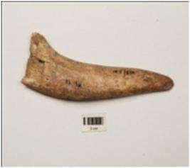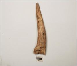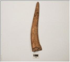 | Description / विवरण | Long chisel on anteler horn with polished surface, partly chipped off at working end and broad at other end, vertical cracks on surface. |