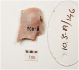 | Description / विवरण | An utilized flake made on chert, end struck flake, prepared striking platform on proximal end, prominent bulb on ventral surface, use ware marks on cutting edge, partly retouched and flake scars on dorsal surface. |