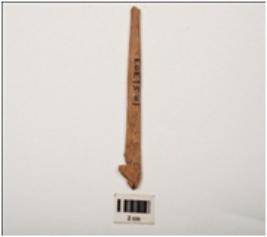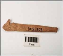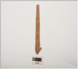 | Description / विवरण | Bone harpoon with smooth surface and barb, partly broken from both ends and rectangular section, light brown in colour. |