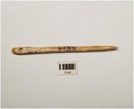 | Description / विवरण | Long bone needle with eye having polished highly surface, plano-convex in section pointed at one end and flat at other end, cream in colour. |
