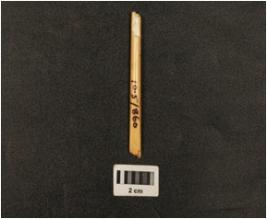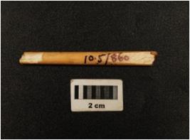 | Description / विवरण | Fragment of bone needle with highly polished surface, broken from circular and flat ends, circular in section and cream in colour. |