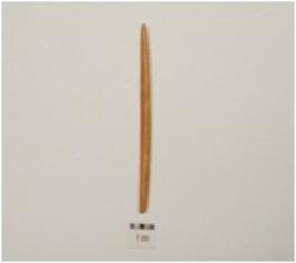 | Description / विवरण | Fragment of bone needle, sharp tip, circular cross section and polished surface. |