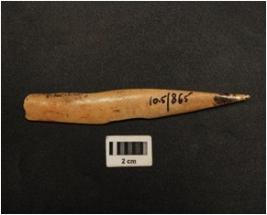 | Description / विवरण | Long arrowhead with polished surface, pointed at one end and flat at other end, rectangular in section and cream in colour. |