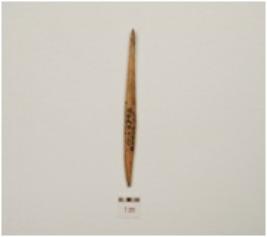 | Description / विवरण | A bone needle, sharp tip and polished surface. |