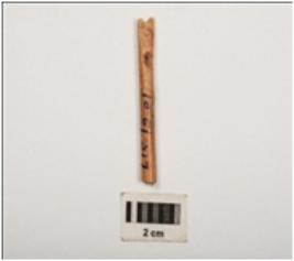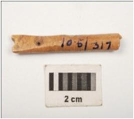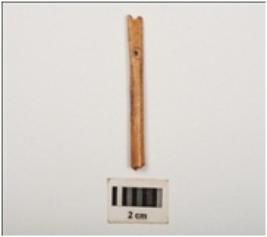 | Description / विवरण | Fragment of needle with eye, polished surface, circular section and broken from both ends, light brown in colour. |