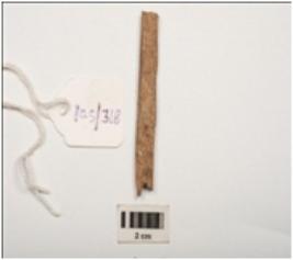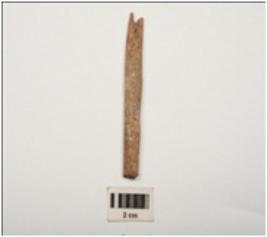 | Description / विवरण | Fragment of bone with partly smooth surface and partly broken eye grains on surface and oval section. |