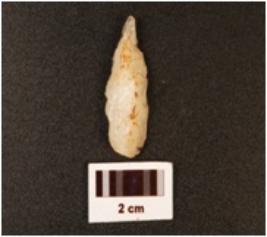 | Description / विवरण | Point made on quartz diffused bulb on the ventral side, distal end pointed, use wear mark on the both cutting edges. |