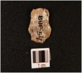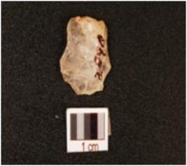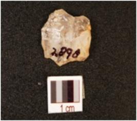 | Description / विवरण | Scraper made on quartz, diffused bulb on the ventral side, prepared platform, distal end intact, use wear mark along the both cutting edges. |