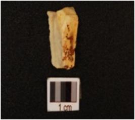 | Description / विवरण | A parallel sided blade, made on chalcedony, ridge on odrsal side, use wear marks on edges, distal end is broken, defused bulb on proximal end. |