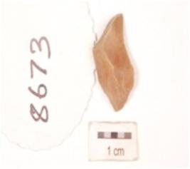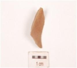 | Description / विवरण | Flake made on chert with a mid-ridge, flake scars on the surface. |