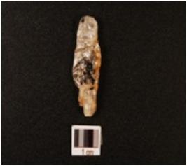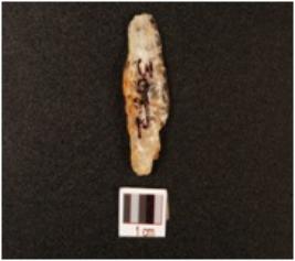 | Description / विवरण | A crystal blunted blade, prepared platform and use-wear marks along the cutting edge. |