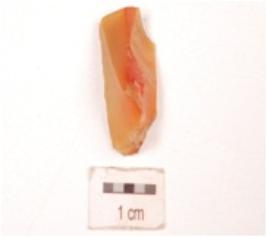 | Description / विवरण | A scraper made on carnelian with blade core blade on one side, straight sharp cutting edge with retouces. |