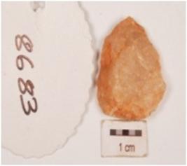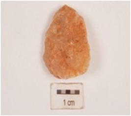 | Description / विवरण | Utilized flake make on quartz with a ridge and flake scars. |