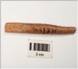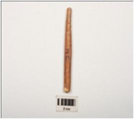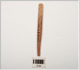 | Description / विवरण | Bone point, long in size with polished surface and incised criss cross section and brown in colour, broken from both ends. |